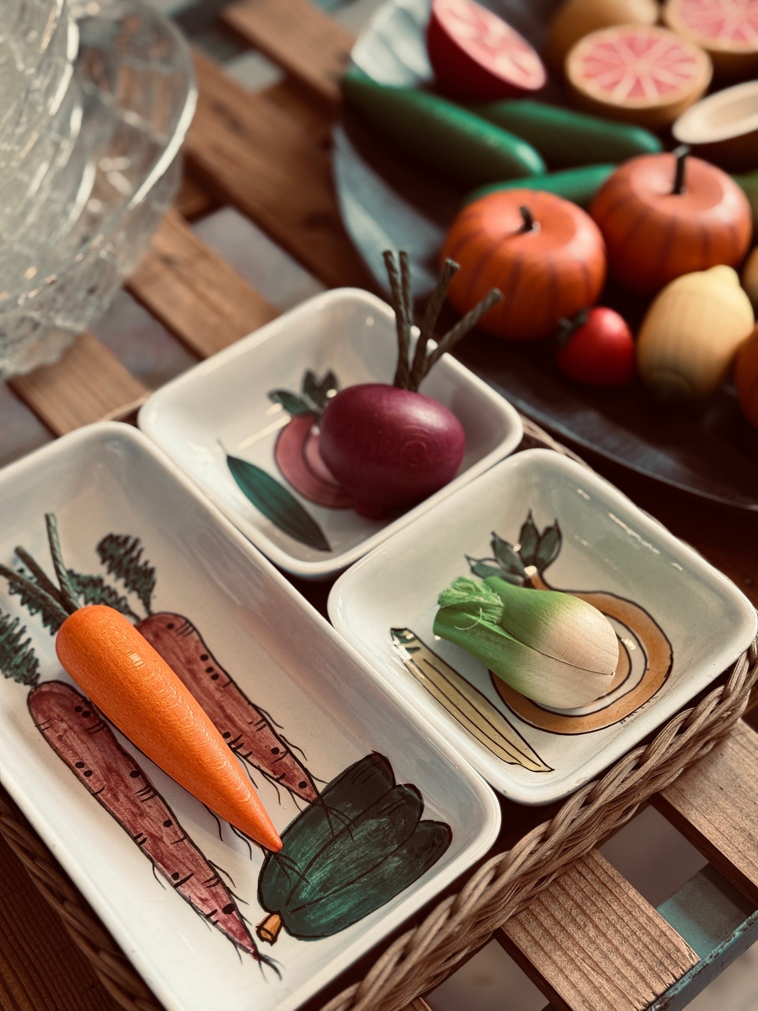 Glas, Holz und Leinen.